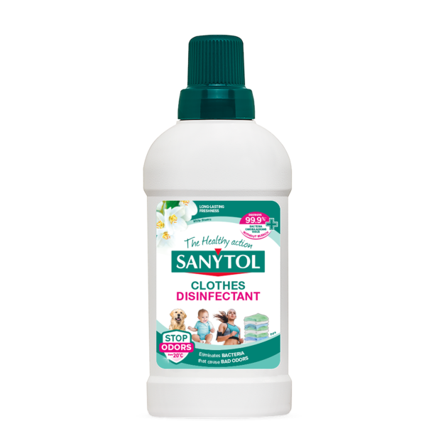 SANYTOL sastāvs bez balinātāja neizbalina apģērbu un saudzē lietotājus un virsmas.