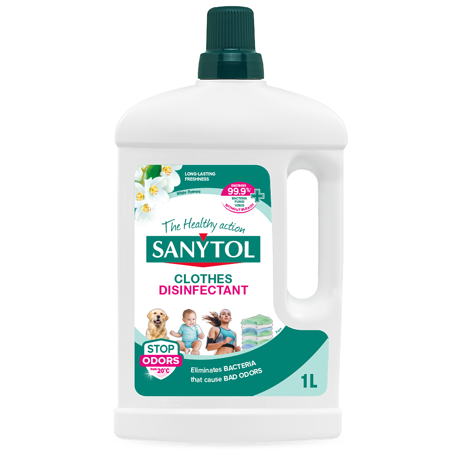 Sanytol veļas dezinfekcijas līdzeklis nodrošina perfekti tīru un svaigi smaržojošu veļu bez baktērijām un nepatīkamām smakām. Tā trīskāršā iedarbība ļauj iznīcināt 99,9 % baktēriju, Candida albicans un vīrusu, tostarp cilvēka koronavīrusu 229E un H1N1. Turklāt tas satur inovatīvo STOP ODORS tehnoloģiju, kas: